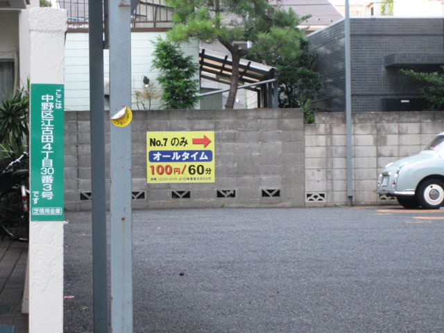 ボクが借りている駐車場は住宅街の中にあり、しかも車同士がすれ違えないどころか、切り返さないといけないような交差点がたくさんある狭い場所だ。そのせいで一通も多い。ボクはいつも環七の外回りを走ってくるのだが、駐車場は環七より内側にある。従って環七から右折しなければならないのだが、駐車場につながる道はどれも狭い道であるため、環七からは右折禁止の交差点しかない。