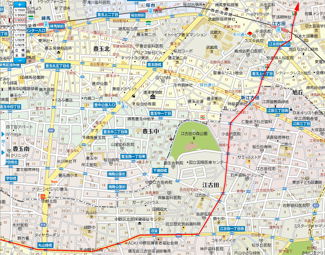で、今日は南回りで行くことにした。南回りとは環七を使わずに、新青梅街道で環七を貫通し、江古田駅の南側から回ってくるコースである(下の地図参照)。
