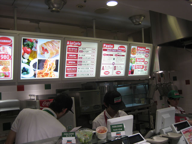 sbarro 行ってきた![]() 収録が 1 時間も早く終わった。 ラジオでも多摩地区を中心に大雪、とアナウンス。 でも、ついてみるとそんなに積もっていなかった。 というわけで、sbarro。ボクは勝手にレストランだと誤解していたんだけど、そうではなくただのスナックであった(汗)。サティのいわゆる食いもの屋が集まっている場所にあるわけだけれども、レストラン街ではなく、スナック街(?)。ケンタとかマックとか。で、気付いたんだけど、要するにデパートの屋上ね(笑)。そう考えると、急に昭和っぽいイメージになってしまった。 で、味の方はというと、デリバリーのピザと大差ない? デリバリーより不味いかも? 個人的には、まぁこんなもんかなぁって感じで特に不満はなかったんだけど、とりあえず店員は慣れてないわ、メニューは不親切だわで、けっこうバタバタした雰囲気だった。接客も慣れてない感じで、商品説明もおぼつかない。去年の 11 月頃オープンなので、もうだいぶこなれていてもいいんだけどなぁ……。