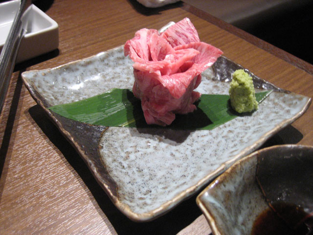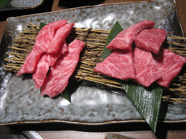 近江牛 カルビ(左)とロース牛刺しタン塩