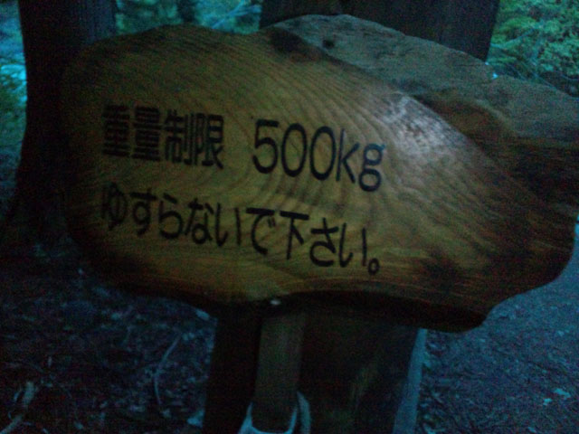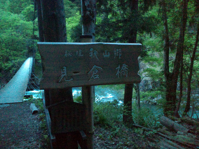 見倉橋というらしい。場所はここ。重量制限 500kg。つまりボクが 5 人わたったらそれ以上はわたってはいけない(ぉ。確かにボク一人が歩いただけでも凄い揺れ! しかもボクがじっとしたあともしばらく揺れているという、なかなかスリリングな橋であった。