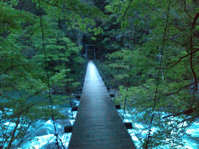 それからさらにもうちょっと下ると怖い吊り橋があるということで、行ってみた。