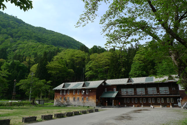 廃校を利用した旅館切明温泉の旅館川の畔に沸いている温泉
