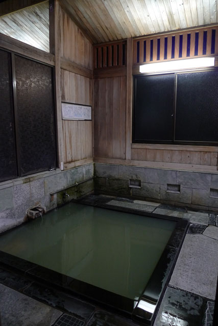 一方の温泉は指先を 5 秒もつけていられないほどの熱さ。そんなわけで、「冷たい冷たい!」「熱い熱い!」と叫びながらの入浴であった(笑)。ちなみに湯質はけっこう硫黄。