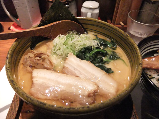 まず鯛塩ラーメンだが、こちらもコラーゲンたっぷりでコクにはとんこつを使っている。一口目にしみてくるのは上品な魚出汁で、昨日食べた醤油にも増して魚の嫌みさがない。そしてとんこつのコクと油の甘みが広がる。