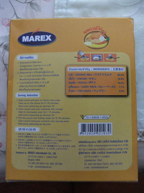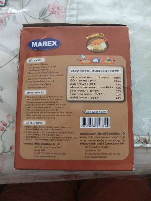 写真は友人からもらったタイ土産のレトルト・カレー。