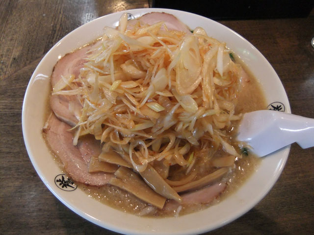 | 味噌ラーメン肉増・辛葱増 | 葱の高さ | 麺は中太の若干縮れ |