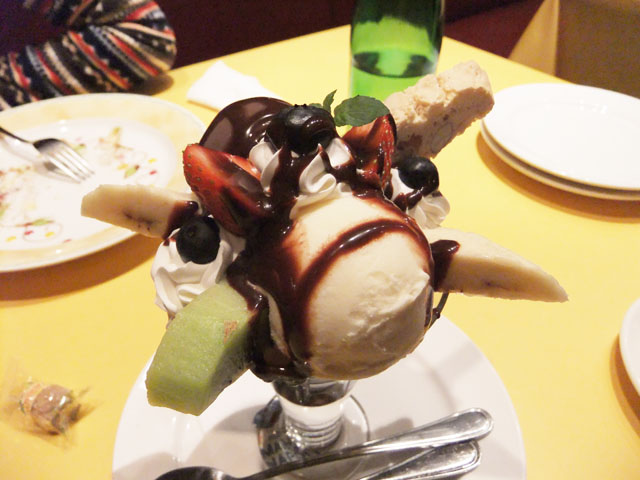 夜、ふらりと知人と甘い物を食べに行く。