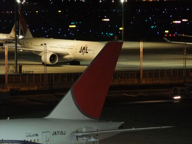 屋上の様子JAL 機10 倍ズーム。よくブレなかった