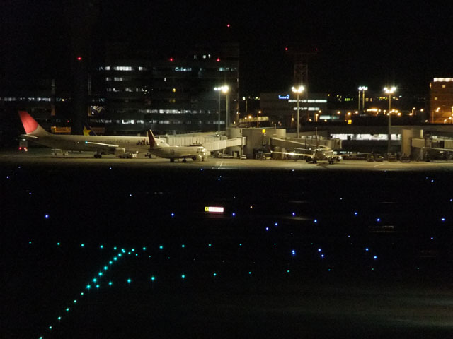 真ん中の黒い部分が滑走路国内線のエプロン。10 倍ズーム国内線用ターミナル