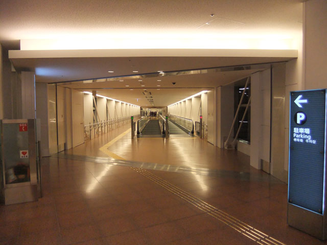 駐車場とターミナルビルを繋ぐ通路下が到着ロビー、上が出発ロビー