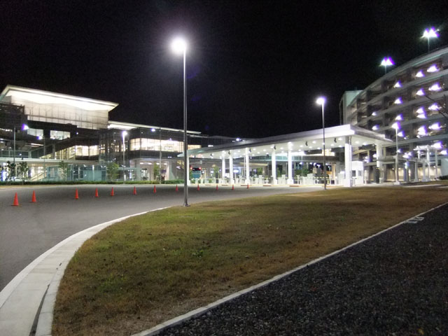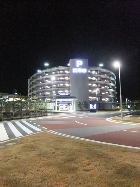駐車場から見たターミナルビル駐車場、見取り図モノレール、改札