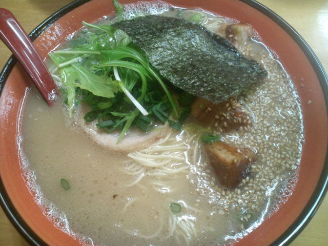 夜、ラーメン食べに行ってきた。っていうか、正確にはなんか食べようってことで知人と外に出てみたものの、22 時を過ぎるとチェーン店ばっかりで、うろうろうろうろ車で移動しているうちに、まーここでいいか、ということで入った(汗)。