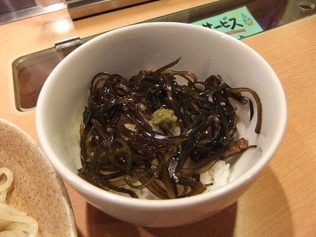 おもしろかったのだが、お茶漬け。食べ終わった付け汁を使うのだが、こちらは昆布がたくさん入っていて、全く別の味になる。しょっぱさは変わらないが、昆布の甘みと食感が心地よい。