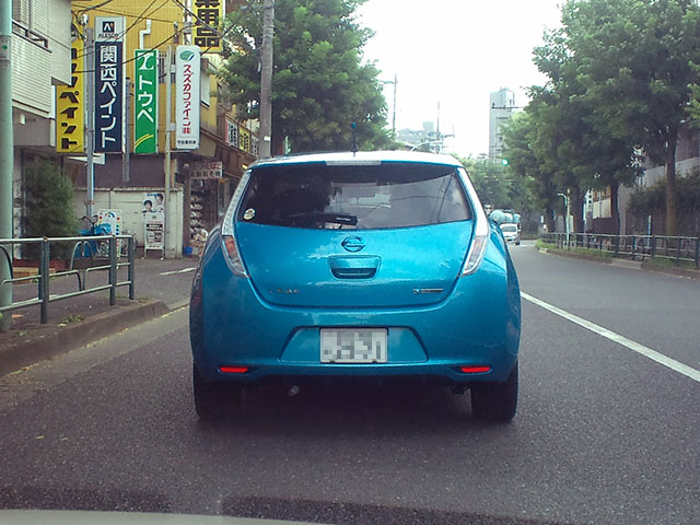 下の写真はその知人を迎えに行く途中で見つけた、日産リーフ