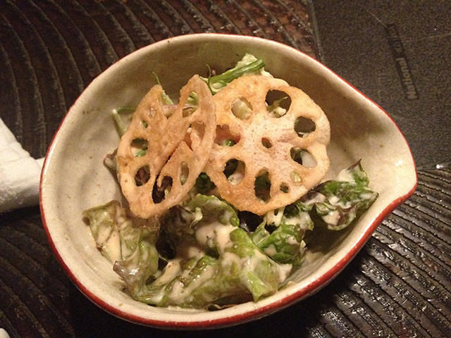 寒ブリの酒粕煮(突き出し)湯飲みレンコンのサラダ