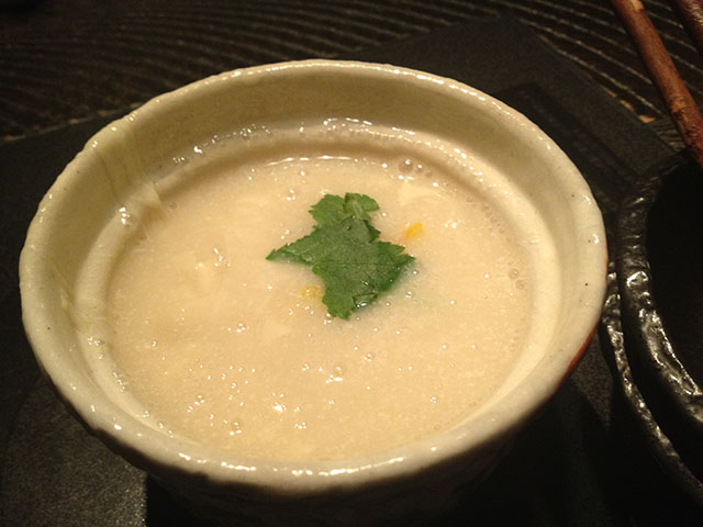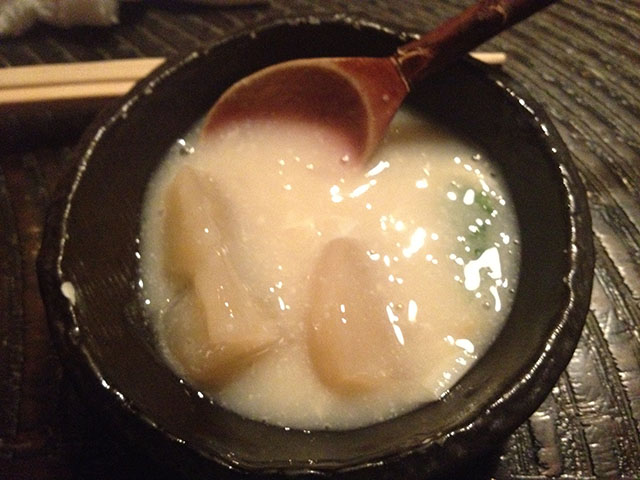 蕪の豆腐煮(器)中はお粥のようにトロトロ白いのは湯葉が溶けたもの