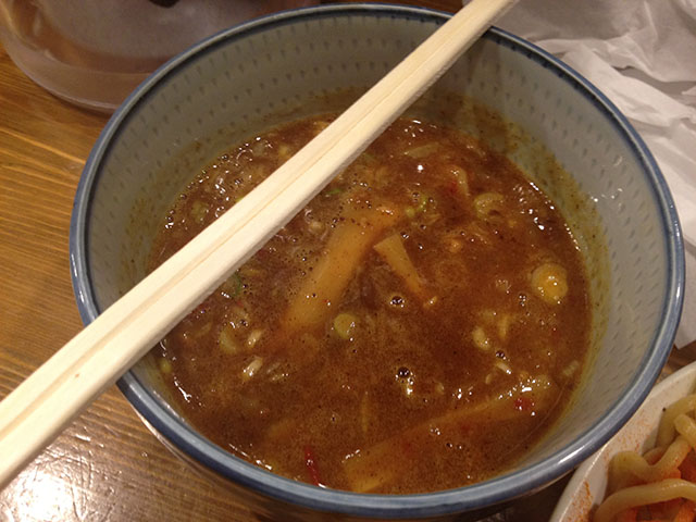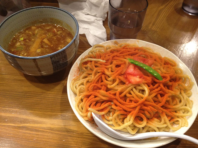 ここ、トマトチーズつけ麺とかあって興味があったんだけど、たまたま隣の席の人(赤の他人)がそれを頼んでいたのでちょっと覗いてみたら、チーズとトマトが付け汁の中に突っ込んであるだけだった。いやまぁ、不味くはないのかもしれないが……うーむ、なんという豪快さ。