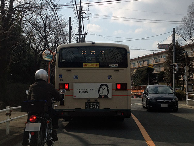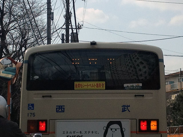 下の写真は道中で見つけた西武バスの教習中のバス。ちょっとわかりにくいが、方向幕に「教習中」と書いてある。始めて遭遇したかも。がんばって大型二種をとってください。