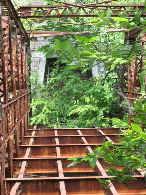まさに天然のクーラー。塞がれている岩の隙間から冷たい空気が吹き出してくるのだ。他にも昔使われていた鉄橋や火薬庫なんかがあった。