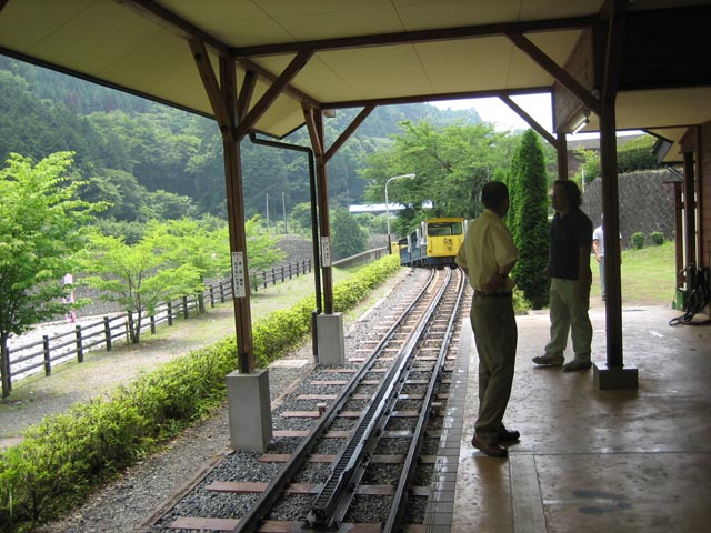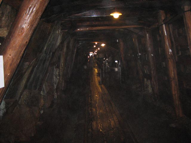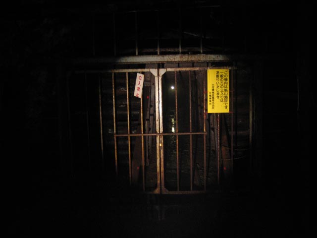 本日のメイン・イベントである。まずはトロッコ電車で乗り場から入り口へ。この入り口までは機関車で引っ張ってくる。理由は入り口から乗り場までの急勾配が上れないためで、機関車はアプト式になっている(笑)。入り口まで来たら機関車を切り離し、いよいよ中へ。