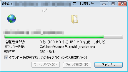 ところでドコモ回線の転送速度なんだけど、ボクの生まれ故郷である愛媛県の北条という場所で、なんとハイスピードエリアであった。しかも転送速度測定サイトでは 70kbytes/sec そこそこなのだが、実際に HTTP でダウンロードとかすると、300kbytes/sec オーバーは普通に出る。つまり 2.4Mbps 出ているのだ。去年帰ったときは、WILLCOM で、32kbps 出すのもやっとだったので、すごくありがたい。 マジで VPN がつなげられないのが悔やまれるじぇ。