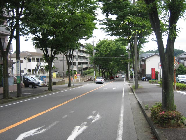 を南に超えると景色が一変し、緑がぐっと多くなり、坂だらけの風景になる。上の写真も武蔵境をのぞけばすべて鶴川より南側である。