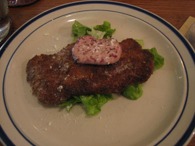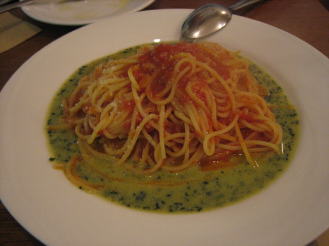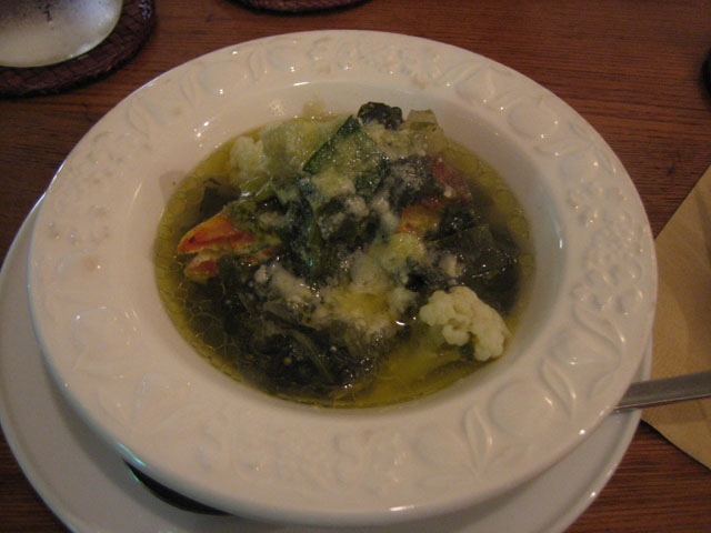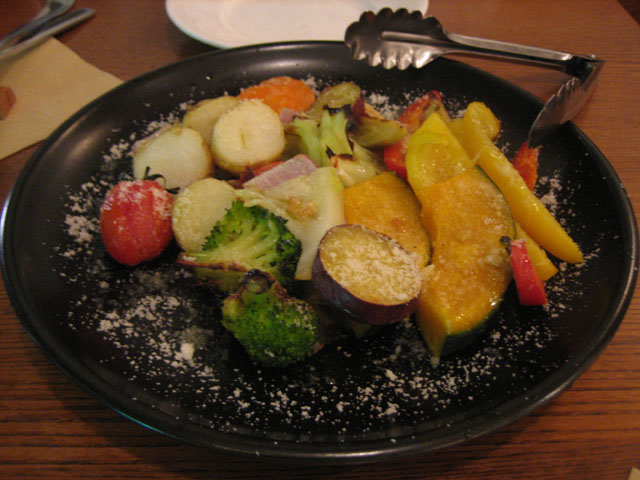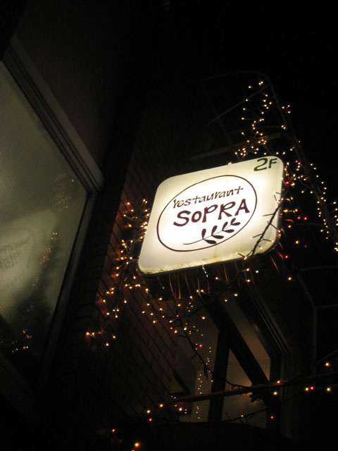 SOPRA(井の頭公園のイタリア料理)龍英と井の頭公園駅前にある SOPRA で、今回、レポートはうまくできない(汗)。 まず前菜の温野菜スープのオムレツ。スープ、とはいえどちらかというと温野菜とオムレツの方がメイン。チーズとオリーブ・オイルが溶け込んでいて、さらに野菜はネギやカリフラワーなどが使われており、そしてスープに少しの塩加減がしてある。オムレツは鮭を包み込んだオムレツで、ふわりとした感触の中にスープが溶け込んで独特の食感を作り出しているばかりか、塩気はまったくなく、スープと一緒に味わうことによってちょうど良い濃さの味に保たれている。 今回、一番気に入った料理であった。 次の焼き野菜も、美味しい。野菜の焼き加減が絶妙で、固いところは固く、柔らかいところは柔らかく焼いてあり、さらに野菜一つ一つに塩加減が調整されている。甘い野菜はそれが引き立つように、それぞれの野菜の長所が引き立つようになっているのである。 ピザはシェフお任せのピザで、お客さんが頼んだメニューに合わせて、味が重ならないようにそれでいて他の料理に合うように具を選んで焼いてくれる。今回はエリンギとアンチョビで、生地は若干硬く、歯ごたえがある。 パスタは二色のパスタで、トマトソースとバジリコのパスタ。トマトの嫌みな酸っぱさがなく、それでいてトマトの味(うまく言えないんだけど)。メンは少し固めで、のどごしがよい。そしてバジルがちょっとした甘みも伴って口の中に広がる、もう何というかうまく表現出来ない味である(汗)。 ただ本来は先にトマトの部分を食べ、次第にバジルを混ぜてゆき、最後に残ったソースはパンを付けて食べるのが、このパスタの食べ方らしい。 そしてメインの豚のカツレツ。 というわけで、SOPRA、かなりお勧めのイタリア料理店である。しかもお客さんの要望にも色々答えてくれるのがすごい。メニューもすぐにかわるし、仕入れられた食材にも変わることがあるので、一年中楽しめるお店ではないだろうか?