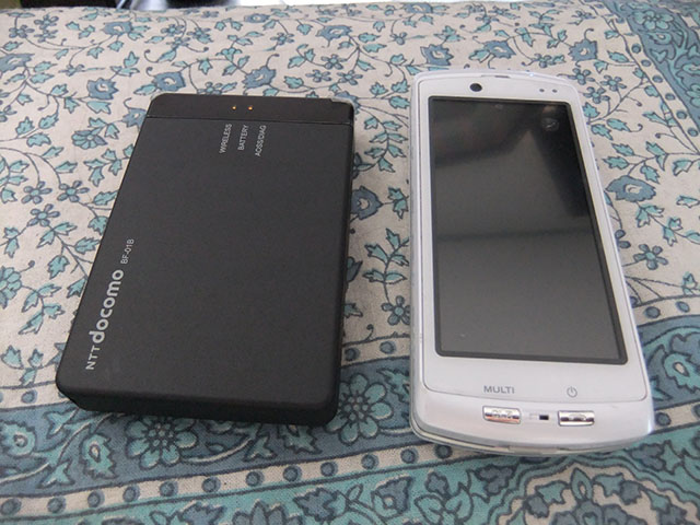 ドコモのモバイル Wi-Fi ルータは二種類あって、BF-01B と HW-01C とがある。HW-01C の方が新しく、また 3DS などにも対応しているらしいのだが、電池の持ち時間が 4 時間。BF-01B は 6 時間である。ただ連続待ち時間は圧倒的に HW-01C の方が長く、BF-01B が 30 時間なのに対して、HW-01C は 100 時間である。でもボクの使い方からして、待ち時間より実際の連続通信時間の方が重要だろうと言うことで、古いけれども BF-01B を選んだ。