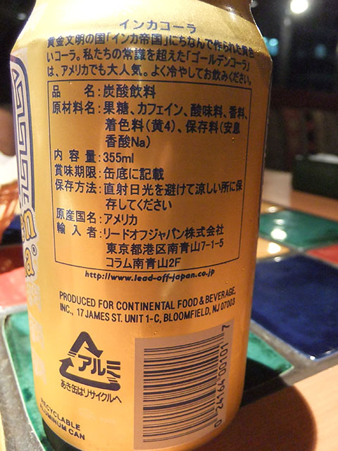ペリエとインカコーラインカコーラの成分表黄金色!