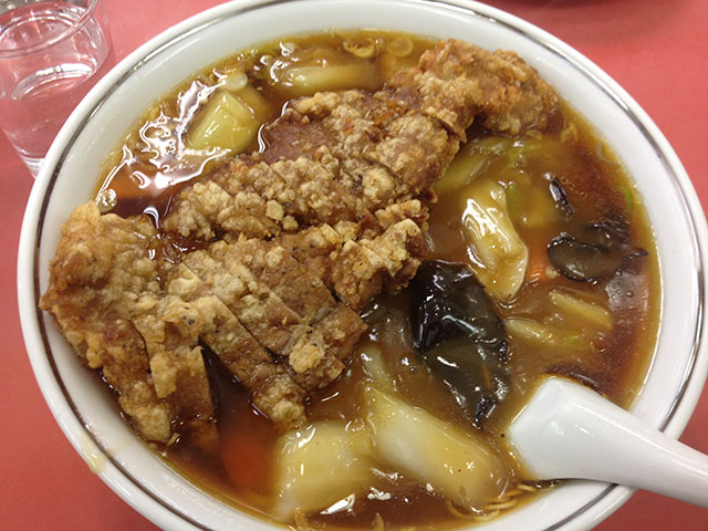 カツはパン粉ではなく片栗粉の衣。パーコー麺というところか。食べログの点数は妥当と言えよう。