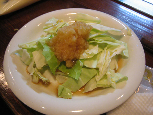 付け合わせのキャベツ。 ポン酢と大根おろし | 素早い腕裁き! | うどん焼き |