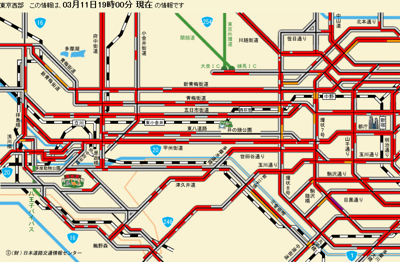 帰りの道は富士街道が新青梅街道との合流地点 から約 1km 東 まで渋滞していたが、それ以外に大きな渋滞はなく、20 分程度で帰宅。ちなみに大泉学園駅南口ロータリーを通ったのだが、迎えの車でごった返していた。