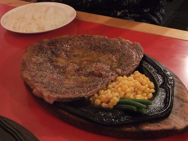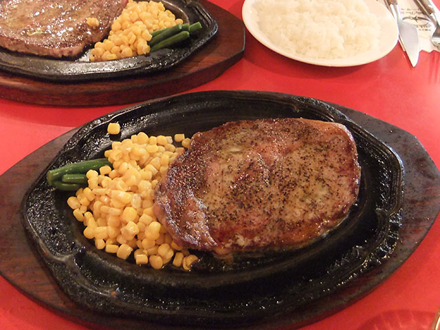 下の写真は打ち合わせの時に食べた、ビリーザキッドっていうステーキ・ハウスのステーキ。大きい方が 1 ポンド。小さい方が半ポンドある。