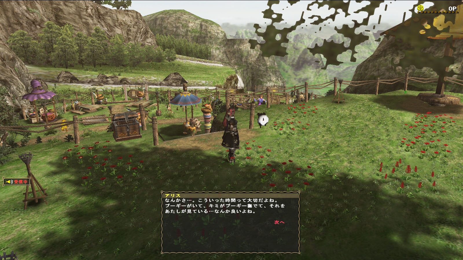 だいたい、装備と素材をほぼ全く理解していないので、素材が全く揃わないのだ。だいたいいつもソロでしかできないので、ボクの腕で、ソロで集められるものとなるとたかが知れる。武器屋であれこれ必要素材を調べても、行けないクエストばかりである。そのため、特にこれといった装備も持っていない。課金アイテムで買った三種類くらいか。そして、スロットとかもよくわかっていないので、スロットは空きっぱなしだし、SP 武器となんだっけな、もういっこ、良く解らんランクが高い武器があるのだが、どうしてそれらが必要で、どうやって作るのかもさっぱり解っていない。プーギーもどうすればいいのかよくわからないので、マイトレで寝ているだけである。せっかく黒豚にしたというのに、名前が自由につけられないことに落胆中だ。「かごしま」って決めてたのになぁ。