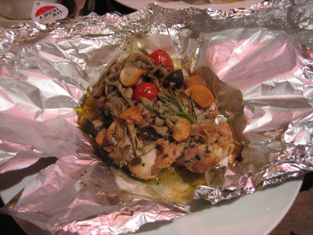 今回はチキンとキノコの包み焼きを頼んでみたんだけど、こっちもハーブが効いていて美味しかった。けど、しょっぱ~い。しょっぱいっていつも言ってる気がするけどね!