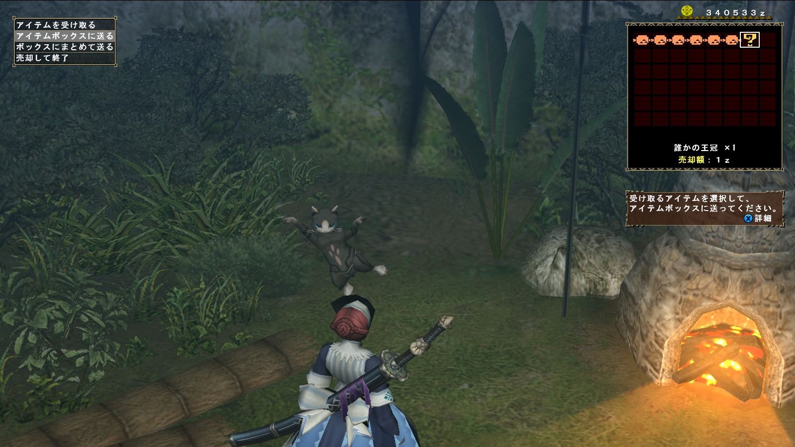 これは「誰かの王冠」というアイテムで作れるのだが、このアイテムは「捜し物猫」というのからしか出ない。捜し物猫はクエストが終わるとランダムで出現するのだが、だいたいクエスト 10 回で表示されるかされないかってくらい。さらにそれで捜し物猫の探しているものをちゃんと届けたとしても、誰かの王冠をくれるとは限らない。