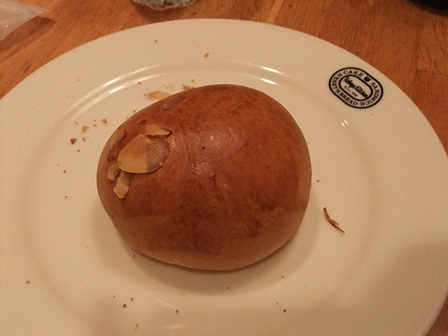 基本、パンとサラダが食べ放題のお店。 ただ、サンマルクのようにもってくるパンが常に焼きたてとは限らなかった。それを知らずに、最初に全種類を頼んでしまった……(汗)。最初にもってくるのは焼きたてではないのだ。 その後、焼きたてをもってくる。 焼きたてはすごく美味しかった! そうじゃない方もちゃんといろんな味がして美味しいは美味しいんだけど、やっぱり堅いしパサパサするし、う~ん……。