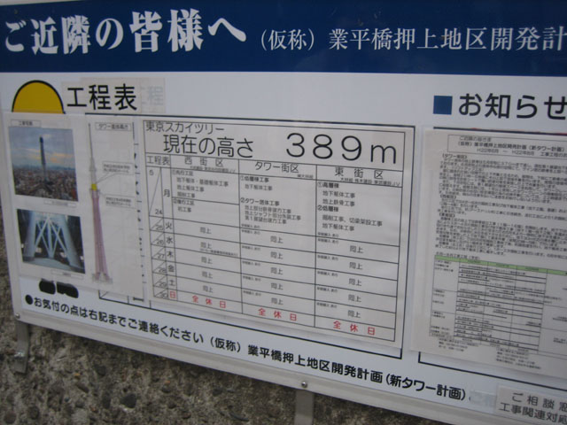 てっきりなんか展示室的な? うまく言えないんだけど、なんかあるのかと思ったら、何にもないんだねぇ。ただけっこう人はいて、みんな写真とってた。周囲に商店街とかあるのかと思ったら、そういうわけでもなく、お店もだいたいシャッターがしまっていた。知人の話によるとこの辺は経済的には死に体になっていて、スカイツリーで活気を取り戻そうなんて運動を始めているらしいのだけど、凄く寂しかった(汗)。