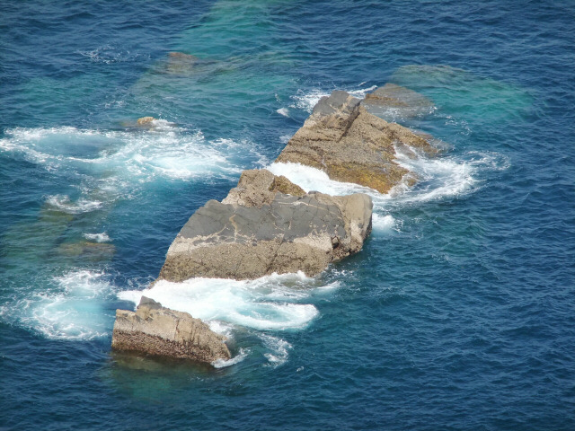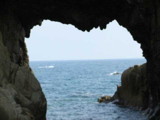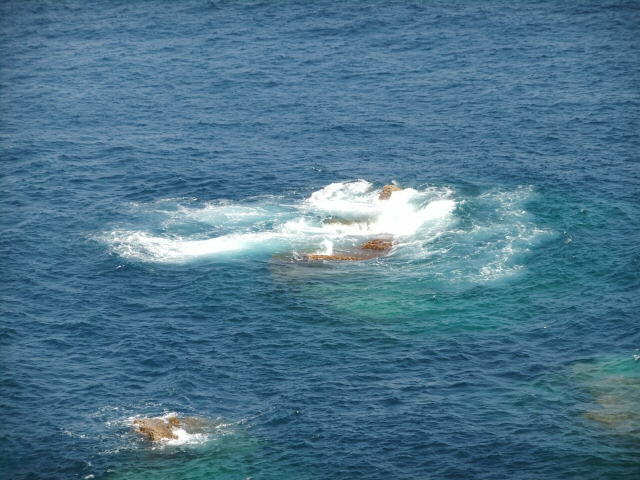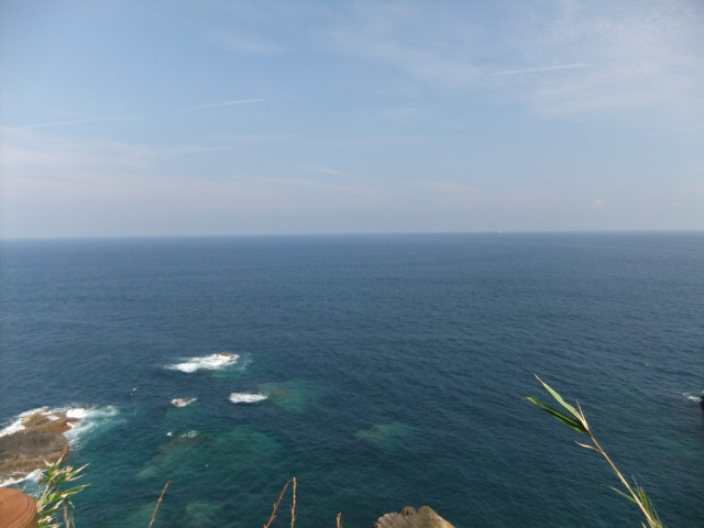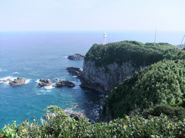 というわけで海底を堪能し、いよいよ足摺岬へ! でも瀬戸内海育ちにとってはやっぱり太平洋はすてき! 水平線だもんねぇ。そして波も高い。瀬戸内海は波も穏やかだし、島がたくさんあるから水平線なんか見えない。もちろん瀬戸内海は瀬戸内海で箱庭のような美しさがあるんだけど、太平洋の雄大さにはかなわないよねぇ。