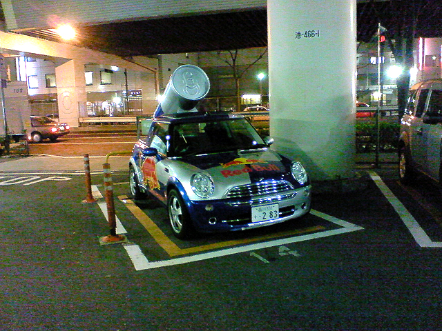 全然関係ないけど、上の写真を携帯からコピーしているときに見つけたレッドブル の宣伝カー。そう言えば写真に撮ったのすっかり忘れてた(汗)。撮影日は 1/29 だそうです。