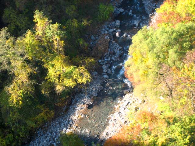 紅葉はきれいだったが、車を降りて落ち着いて撮る時間がうまくとれなかったのと、降りて撮れる場所はまだ紅葉が 5 割りくらいであった。だが山を少し登ると、木々全体が紅葉しており、さらに昇るともう散り始めている所もあった。