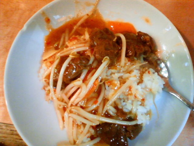 味はと言えば、要するにしょっぱいニンニク風味の豚焼肉。