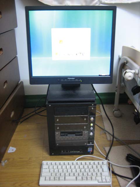 というわけで事務所でセットアップしたマシンを持って帰ってきたので、5 年間お世話になった自宅開発機は引退となった。Pentium 4(Prescott) 、3.0GHz、メモリは DDR3200 の 2GB。Mini-ITX マザーなので 2 枚しか挿せないのだ。ケースは星野金属。たしかこのキューブを買った翌年か何かに倒産してしまった。ねじ穴が絶対ずれない完成度の高いケースだったので、自宅マシンは親のも含めてずっと星野金属だったのに……*2。