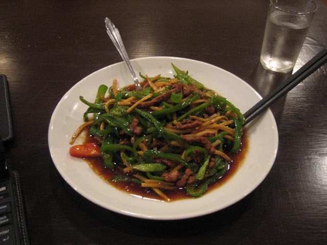 お勧めは下の写真にもある「トウモロコシサクサク揚げ」と「押し豆腐のピリ辛炒め」。押し豆腐のピリ辛炒めは豆腐の麺って感じ。これがうまい! 歯ごたえも凄くいい。湯葉をぎゅっと固めたような感じで、全然ヤワじゃないのよね。