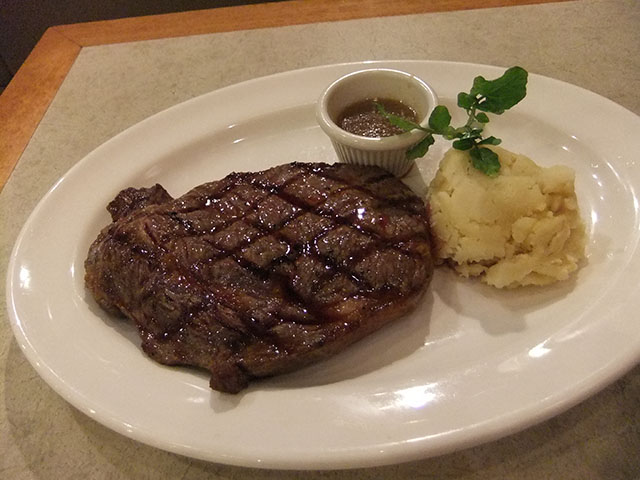 下の写真は打ち合わせの時に食べた、ビリーザキッドっていうステーキ・ハウスのステーキ。大きい方が 1 ポンド。小さい方が半ポンドある。