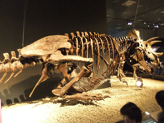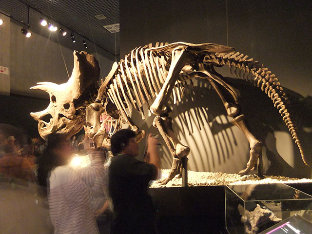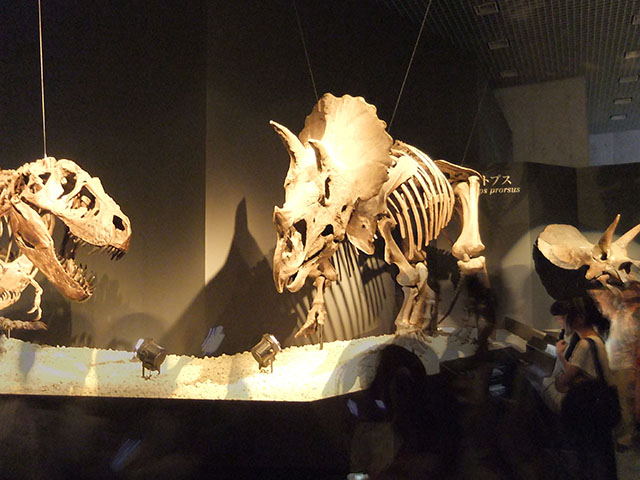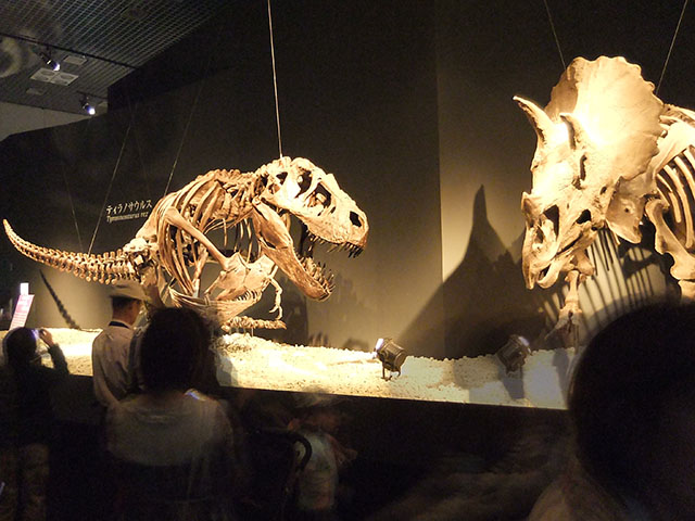 展示のメインはティラノサウルスとトリケラトプスである。これらを中心に、最近解ってきた様々な恐竜に関する新説が披露されている。たとえば恐竜は実はけっこう羽毛に覆われていたのではないかとか、ティラノサウルスの小さな前足(手?)はどのような使われ方をしていたのか、そもそも何故小さくなったのか、また鳥との関連などなど。そう、恐竜は完全に絶滅したわけではなく鳥類として進化していったことがおおかた裏付けられたらしい。