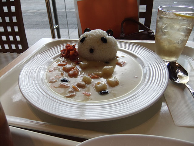 13 時頃に恐竜展は見終わったので、そのあと小休止で昼食をとる(ボクにとっては朝食w)。