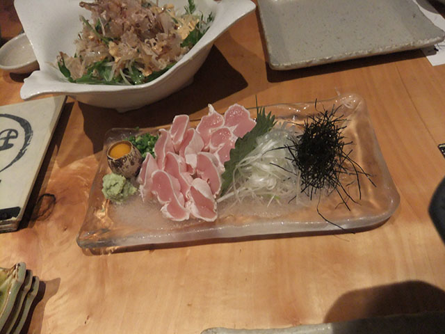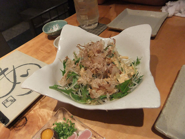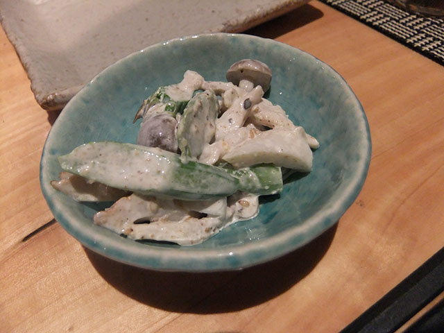 お客も店の店員もおっさんばっかりなのに、妙に食器が凝っていて店内もすごい雰囲気とかデザインとか凝ってて、お皿の彩りまで考えられてる。でもおっさんしかいない(笑)。味も上品で、どれもしょっぱくない。お酒飲む人には物足りないんじゃないかなぁ。でもしょっぱいメニューもあるので、そちらを頼むと良いかも。0 時まで。もうちょっと遅くまでやってれば、車でちょいと来るんだけどなぁ。