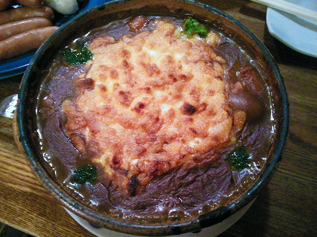 写真は晩御飯に食べた、焼きカレー屋ストーン の焼きカレー(大盛り)とチョリソ盛り合わせ。